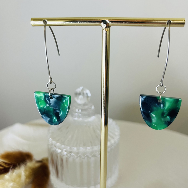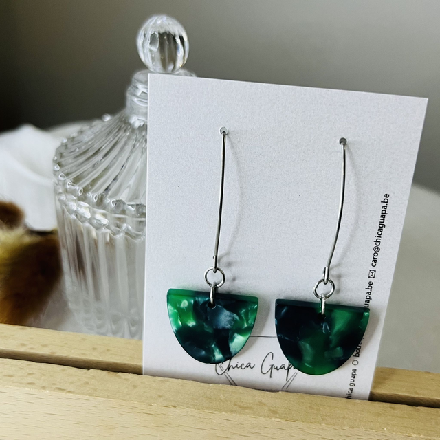 Boucles d’oreilles en acier inoxydable argenté, vert et noir, quantité limitée.
